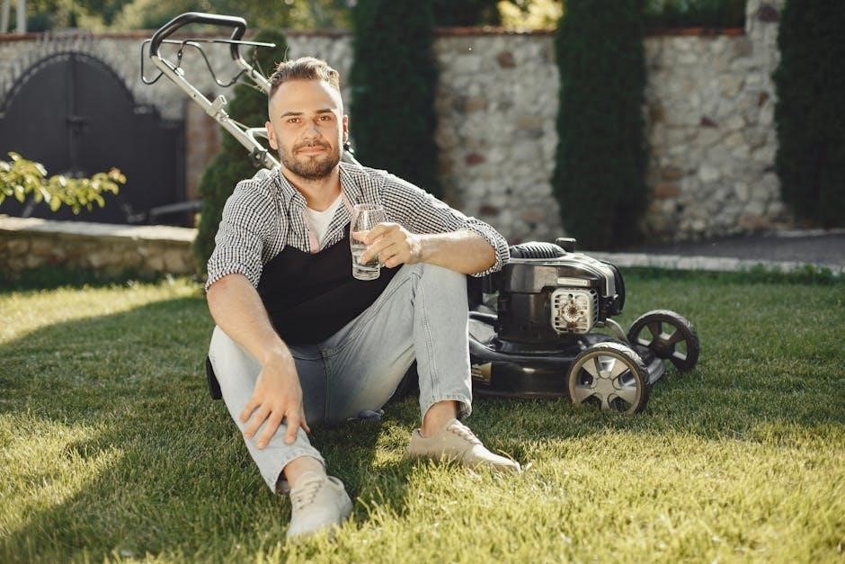 Always disconnect the battery before performing any maintenance or adjustments. The mower incorporates blade brake systems for rapid stopping, minimizing potential hazards. Review the operator’s manual for detailed safety guidelines and warnings. Understanding these features and adhering to safety protocols are paramount for a secure and efficient mowing experience, protecting both the operator and surroundings.
